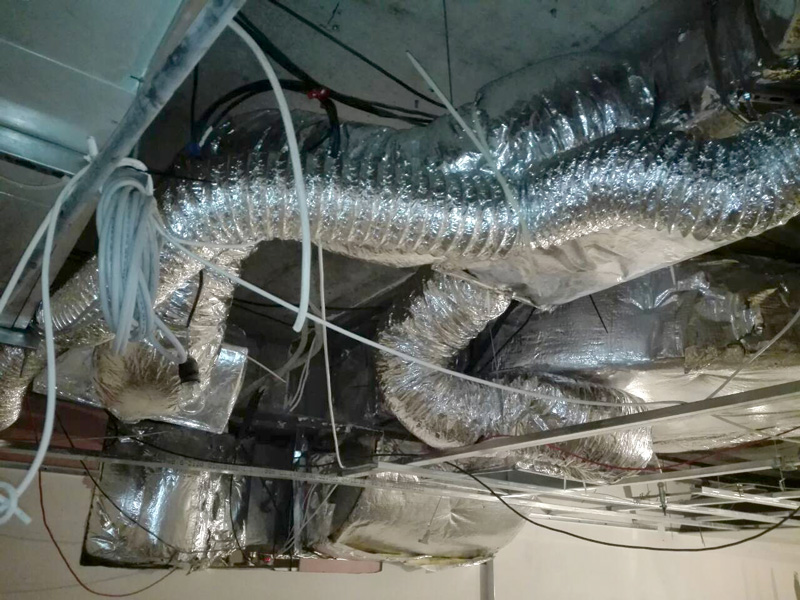 Преработка на съществуваща климатична и вентилационна инсталация и монтаж на допълнителни таванни касети в тренирочъчната зала.